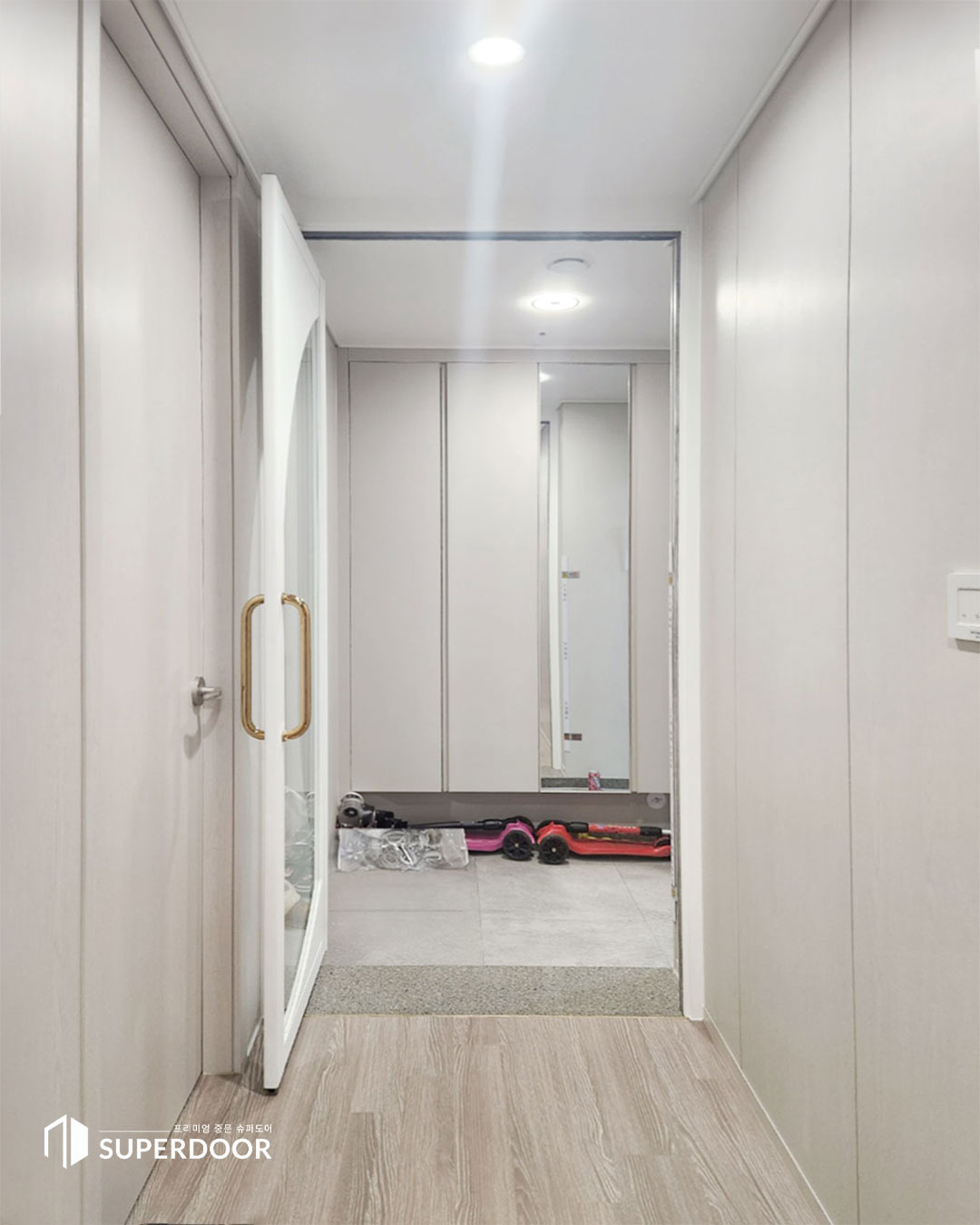 [슈퍼도어]깔끔함과 고급스러움 둘 다 잡은 화이트 현관 인테리어 스윙폴딩 중문 추천