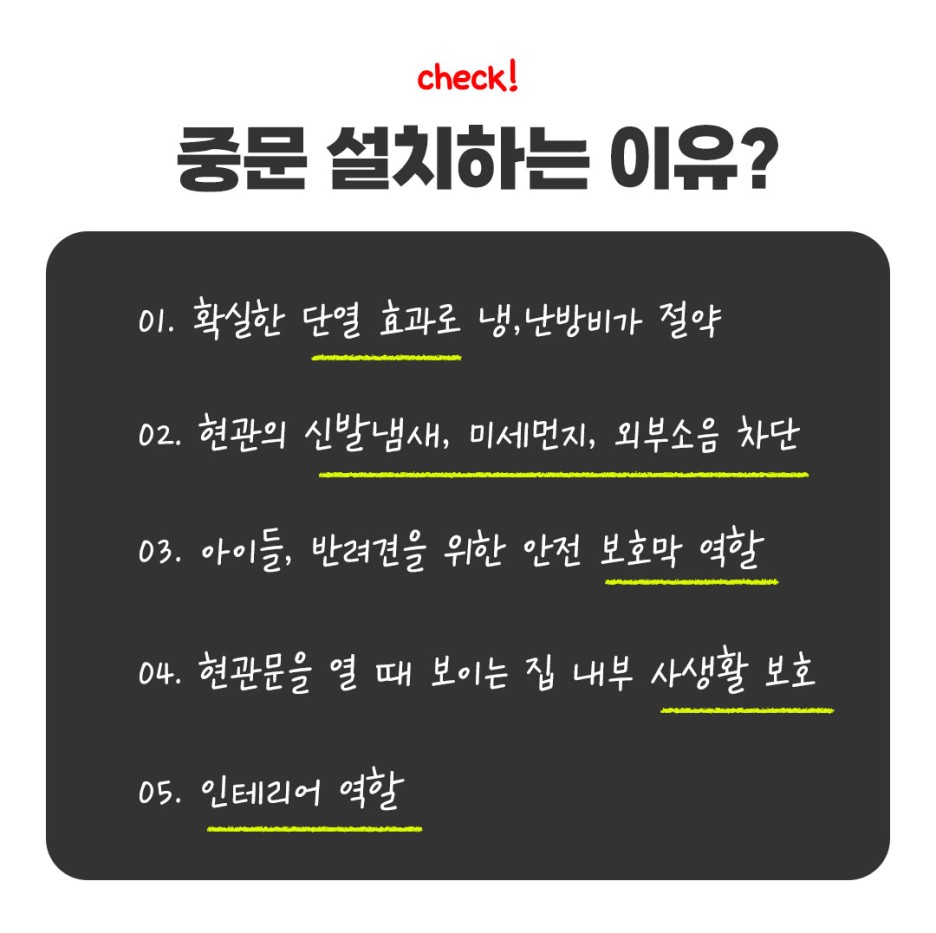 일반 파티션보단 활용도가 높아 공간 분리에 중문 설치를 추천드립니다:)
